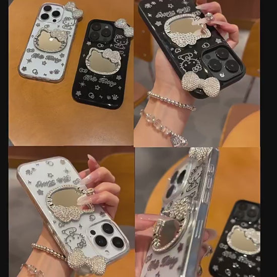 CaseMuses Hello Kitty Mirror Rhinestone Bow Phone Case (Black/Transparent)