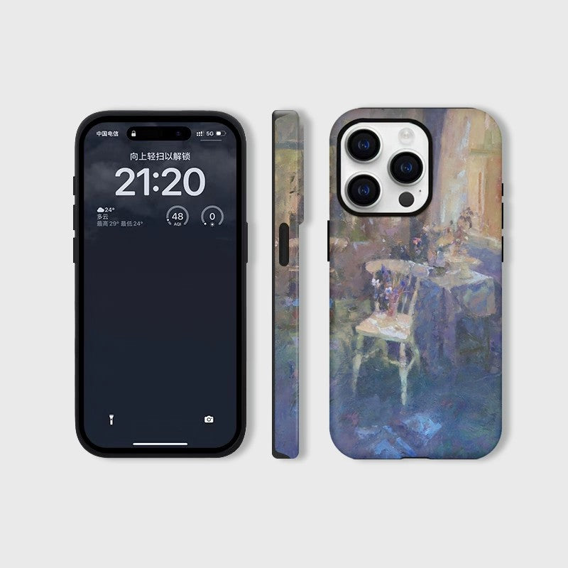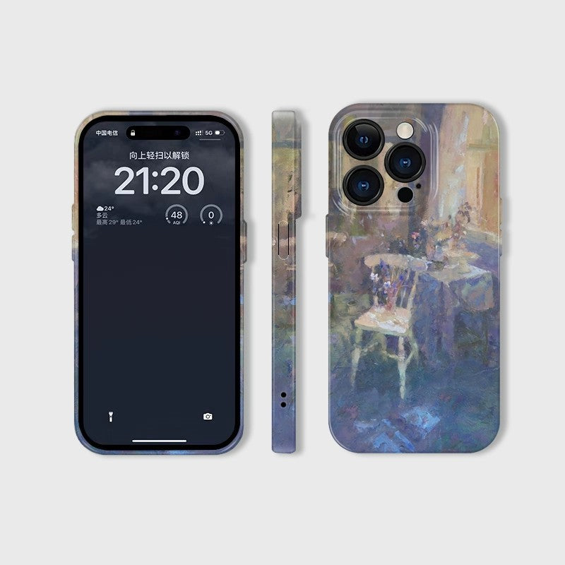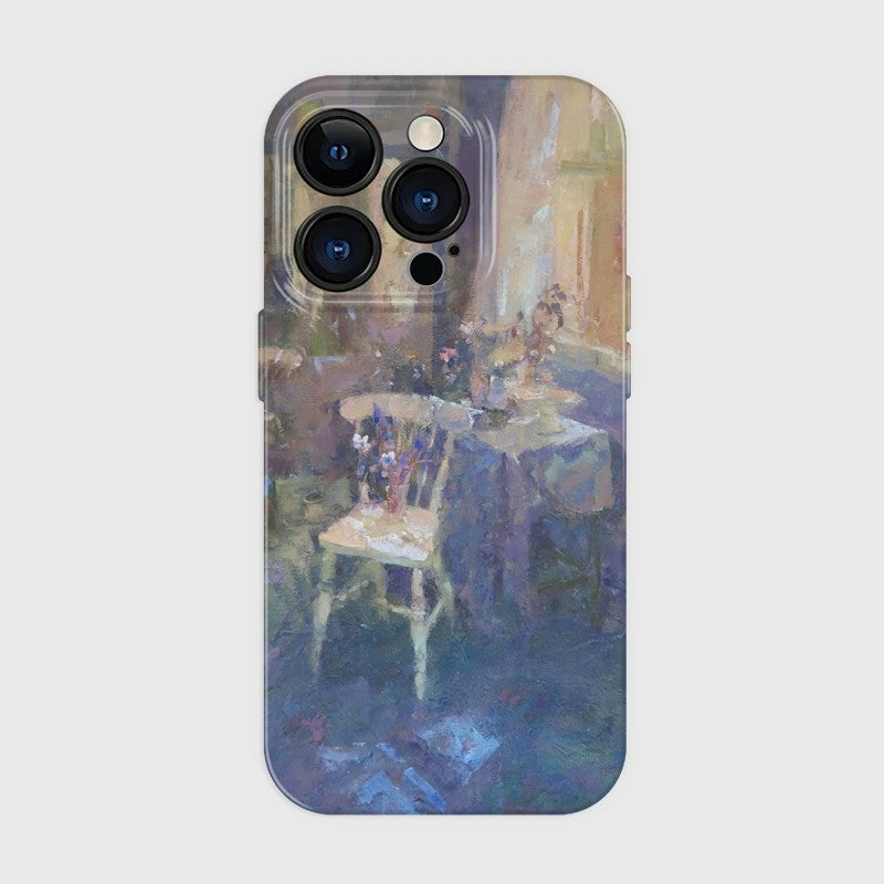 • Description : Inspired by the warmth of a quiet afternoon, Sunlit Afternoon blends soft brushstrokes with muted pastels to capture a dreamy moment of still life. Featuring a cozy interior scene in impressionist style, this phone case turns your device into a piece of tranquil art. A perfect pick for those who love elegance, nostalgia, and timeless design.